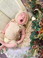 ▪︎ベージュニットロンパースセット(ボンネット・ロンパース)